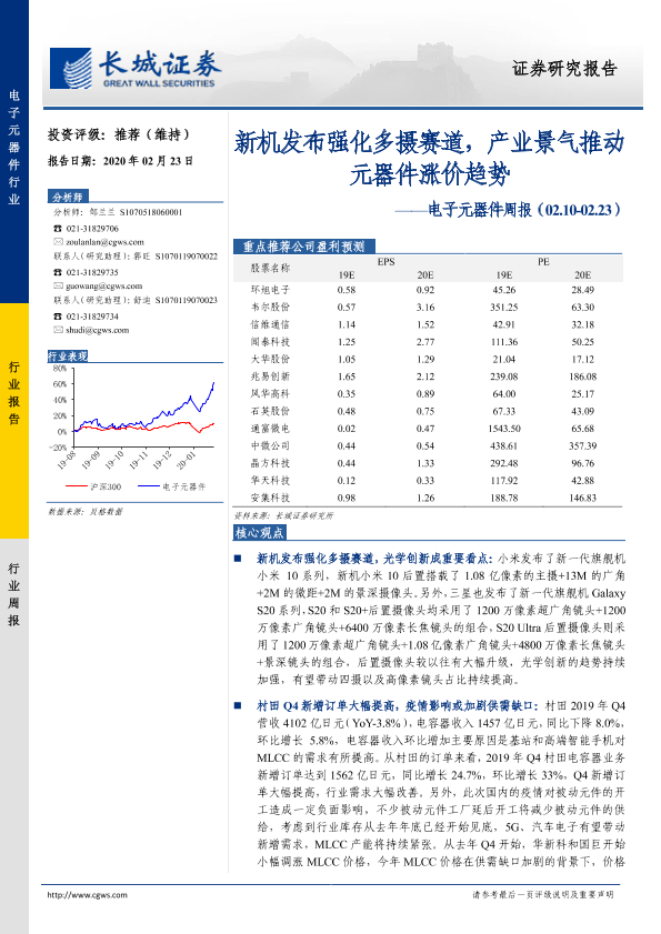 【长城证券】【20200223】20200223-长城证券-电子元器件周报:新机发布强化多摄赛道,产业景气推动元器件涨价趋势-26页