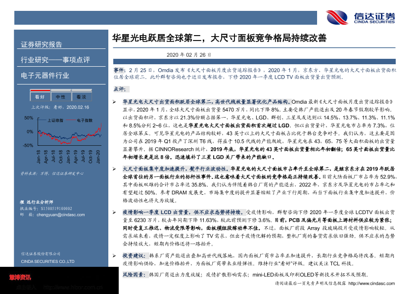 【信达证券】【20200226】电子元器件行业事项点评:华星光电跃居全球第二,大尺寸面板竞争格局持续改善-3页