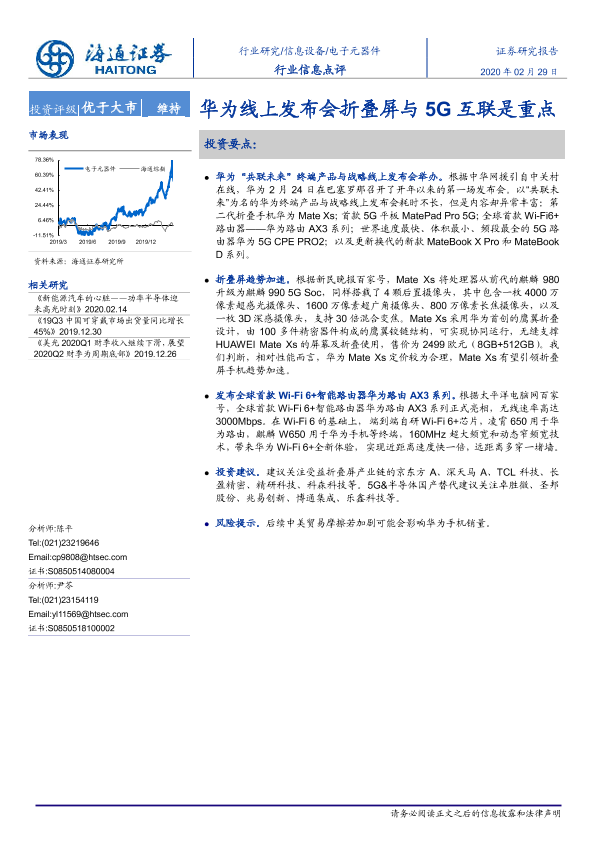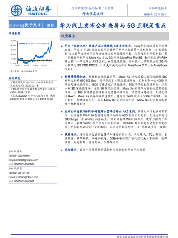 【海通证券】【20200229】20200229-海通证券-电子元器件行业信息点评:华为线上发布会折叠屏与5G互联是重点-2页