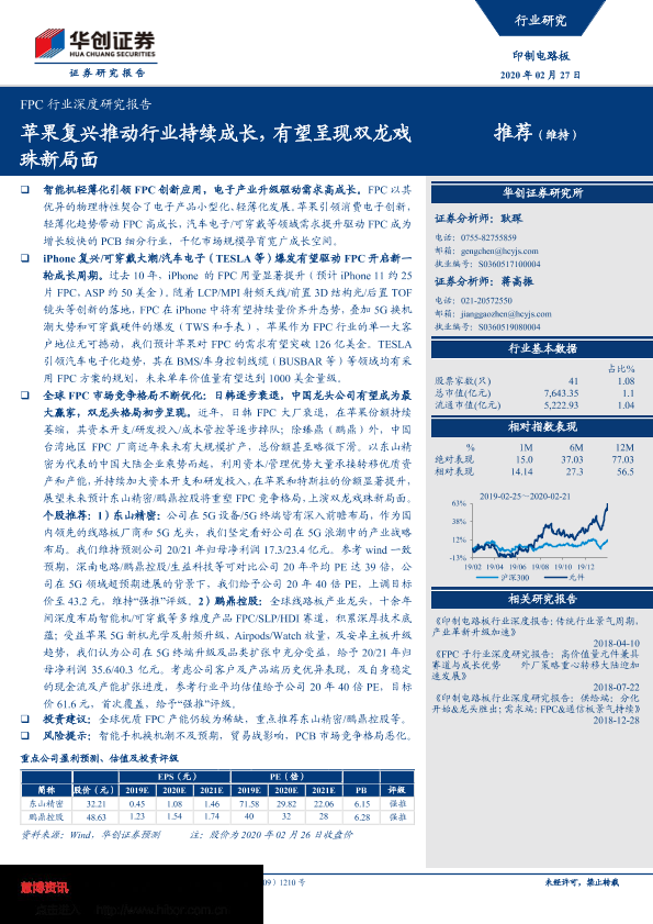 【华创证券】【20200227】FPC行业深度研究报告:苹果复兴推动行业持续成长,有望呈现双龙戏珠新局面-27页