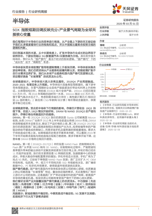 【天风证券】【20200301】20200301-天风证券-半导体行业研究周报:SOX指数短期回调反映充分 产业景气周期为全球共振核心变量-11页