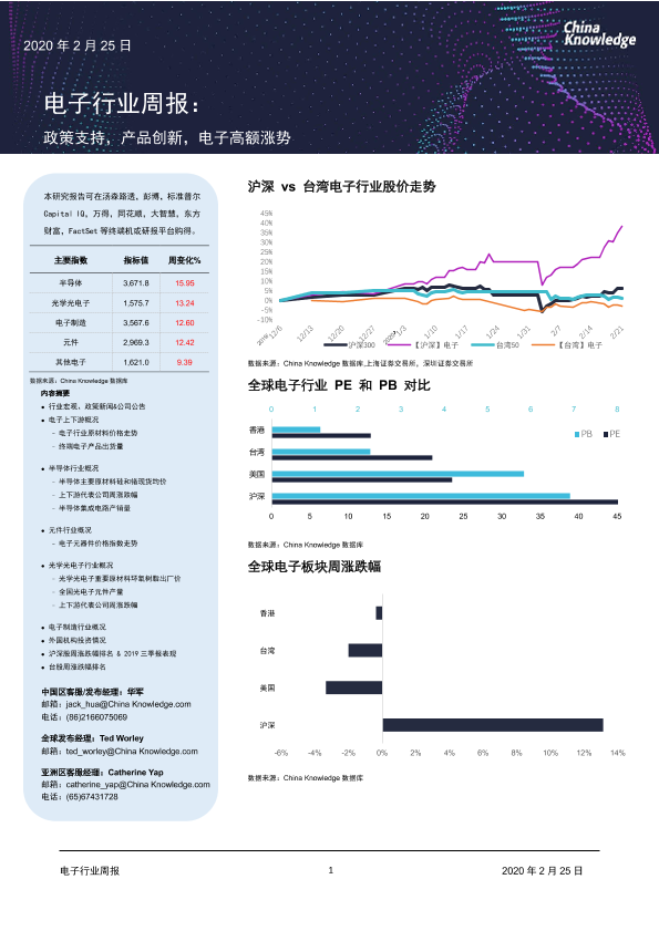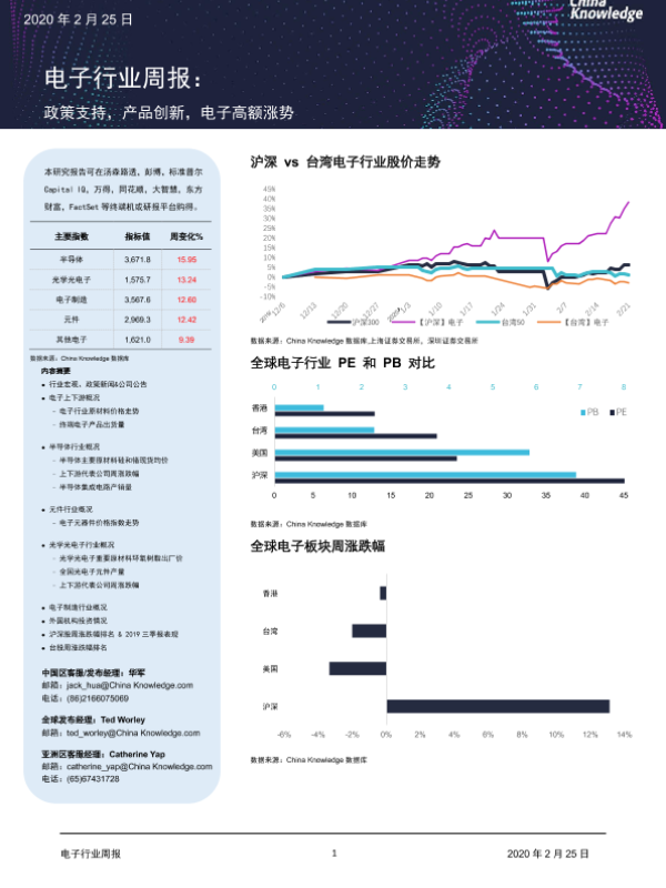 【China Knowledge】【20200225】20200225-China Knowledge-电子行业周报:政策支持,产品创新,电子高额涨势-30页