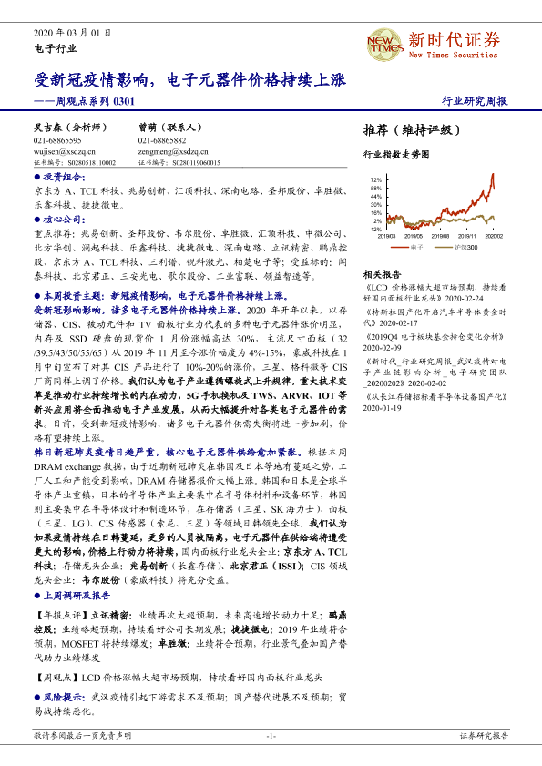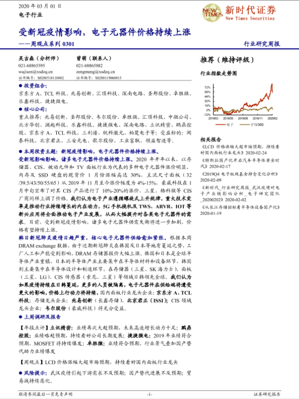 【新时代证券】【20200301】20200301-新时代证券-电子行业周观点系列:受新冠疫情影响,电子元器件价格持续上涨-17页