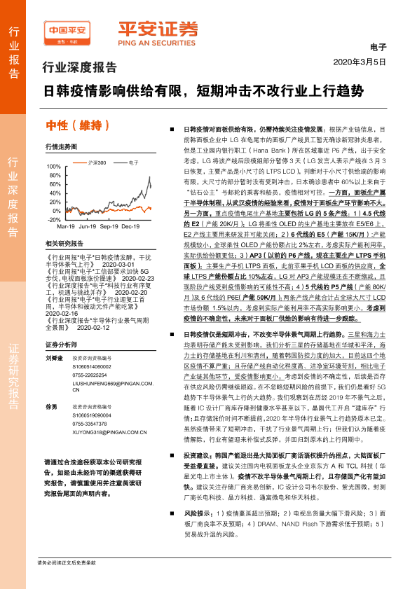 【平安证券】【20200305】电子行业深度报告:日韩疫情影响供给有限,短期冲击不改行业上行趋势-19页