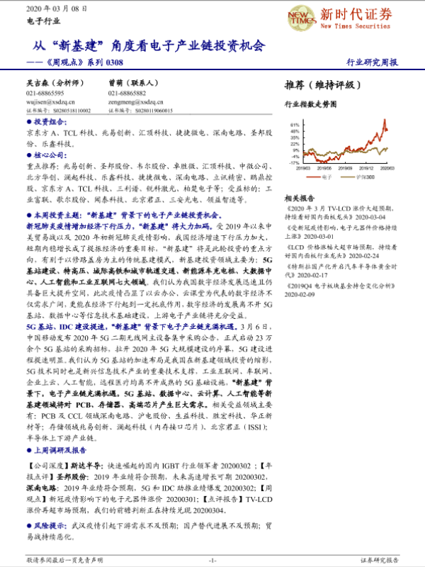 【新时代证券】【20200308】20200308-新时代证券-电子行业《周观点》系列:从“新基建”角度看电子产业链投资机会-17页