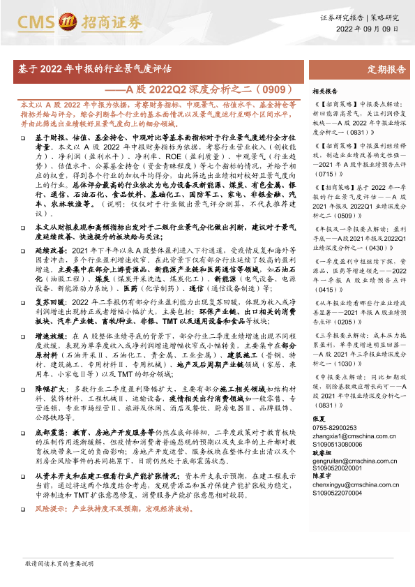 【海通证券】【20220909】A股2022Q2深度分析之二:基于2022年中报的行业景气度评估-16页