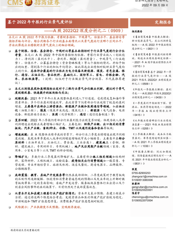A股 中报 招商证券 行业景气度 财务分析