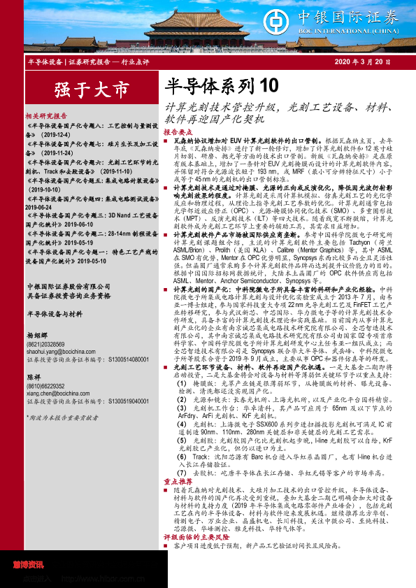 【中银证券】【20200320】20200320-中银证券-半导体系列10:计算光刻技术管控升级,光刻工艺设备、材料、软件再迎国产化契机-9页