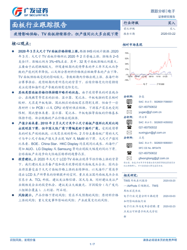 【广发证券】【20200322】疫情影响供给,TV面板持续涨价,但产值同比大多出现下滑-7页