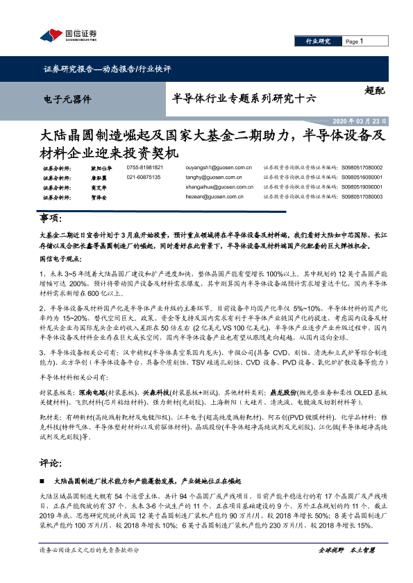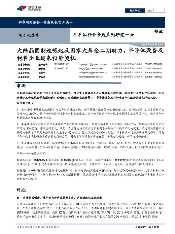 【国信证券】【20200323】大陆晶圆制造崛起及国家大基金二期助力,半导体设备及材料企业迎来投资契机-9页