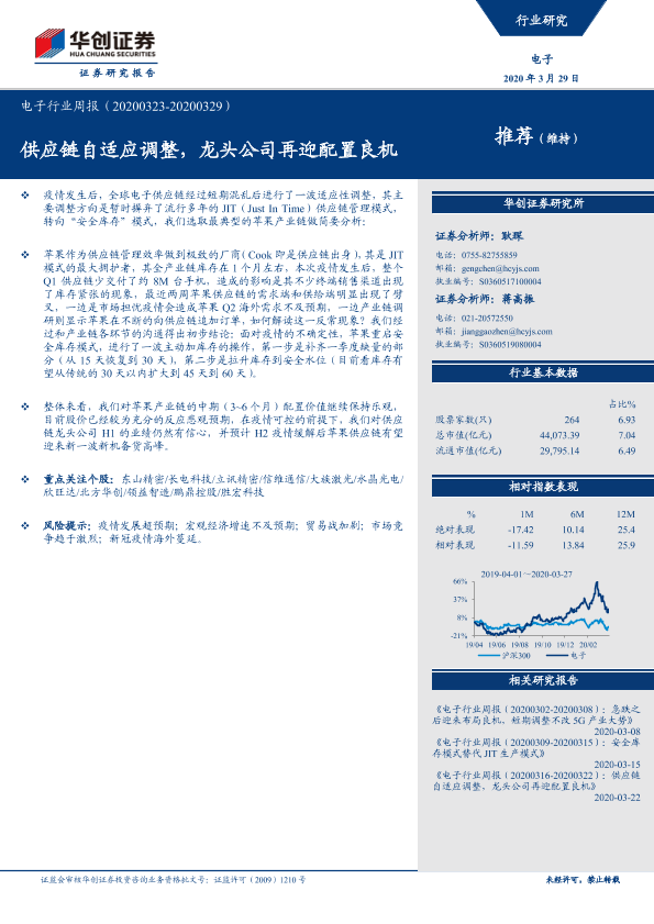 【华创证券】【20200329】电子行业周报:供应链自适应调整,龙头公司再迎配置良机-18页