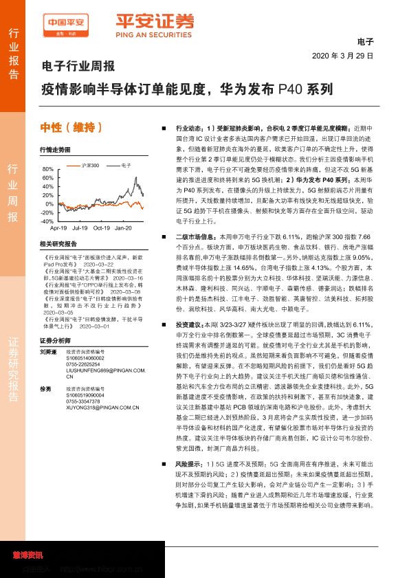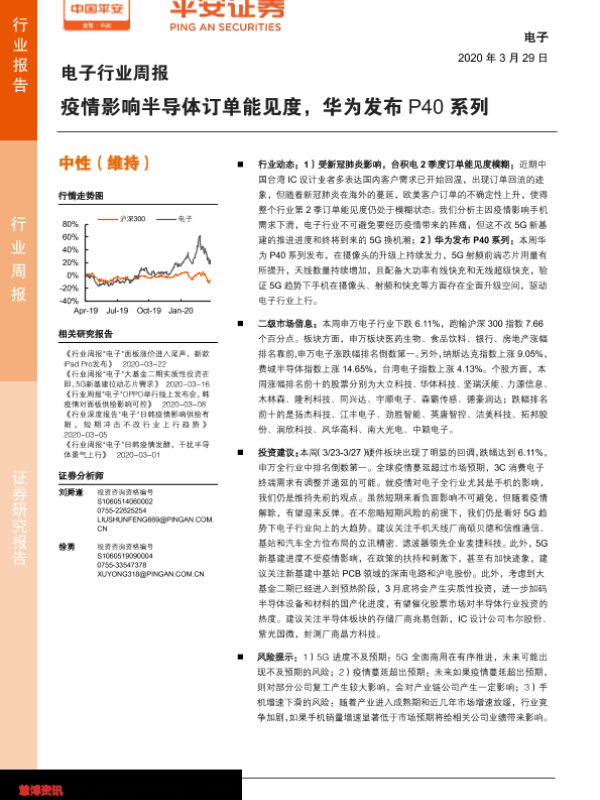 【平安证券】【20200329】电子行业周报:疫情影响半导体订单能见度,华为发布P40系列-6页