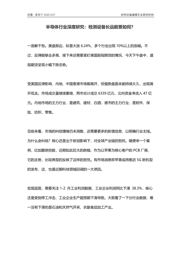 半导体 检测设备 疫情影响 行业前景 财务估值