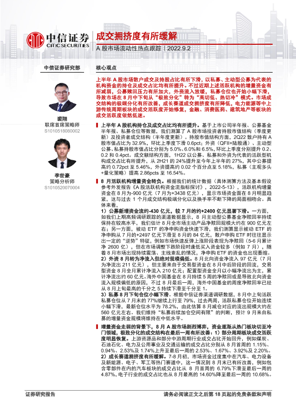 【中信证券】【20220902】A股市场流动性热点跟踪:成交拥挤度有所缓解-18页