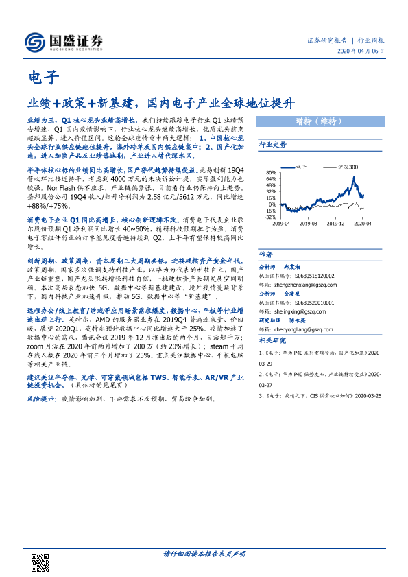 【国盛证券】【20200406】电子行业周报:业绩+政策+新基建,国内电子产业全球地位提升-18页