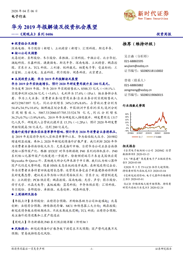 【新时代证券】【20200406】20200406-新时代证券-电子行业《周观点》系列:华为2019年报解读及投资机会展望-19页