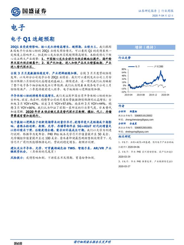 【国盛证券】【20200412】电子行业周报:电子Q1迭超预期-11页