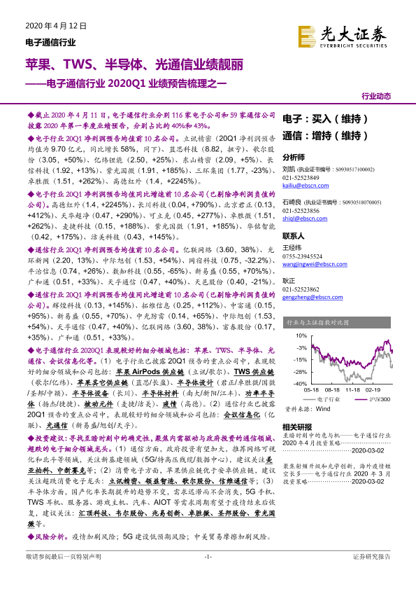 【光大证券】【20200412】电子通信行业2020Q1业绩预告梳理之一:苹果、TWS、半导体、光通信业绩靓丽-12页