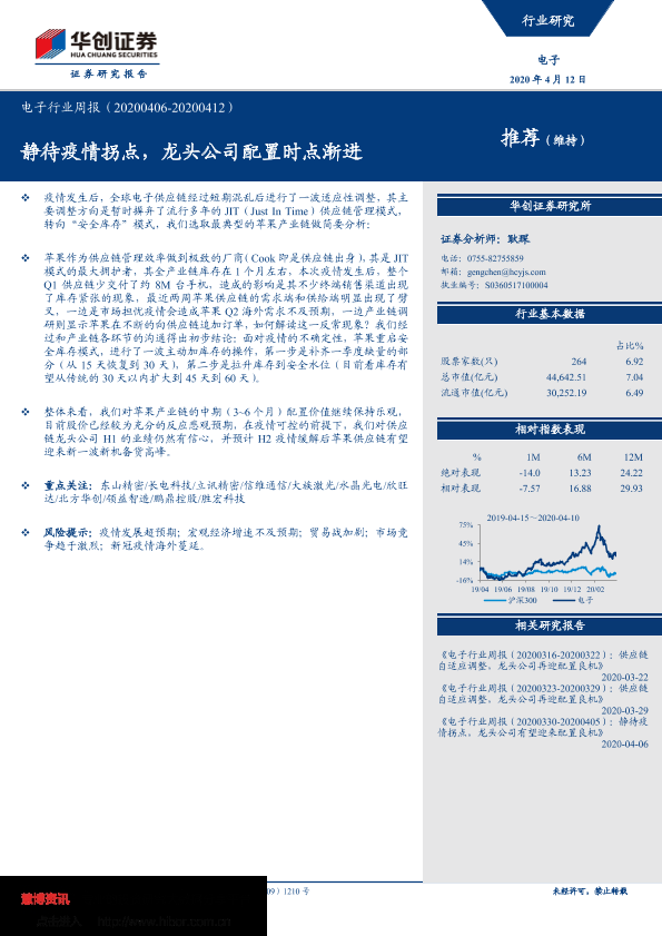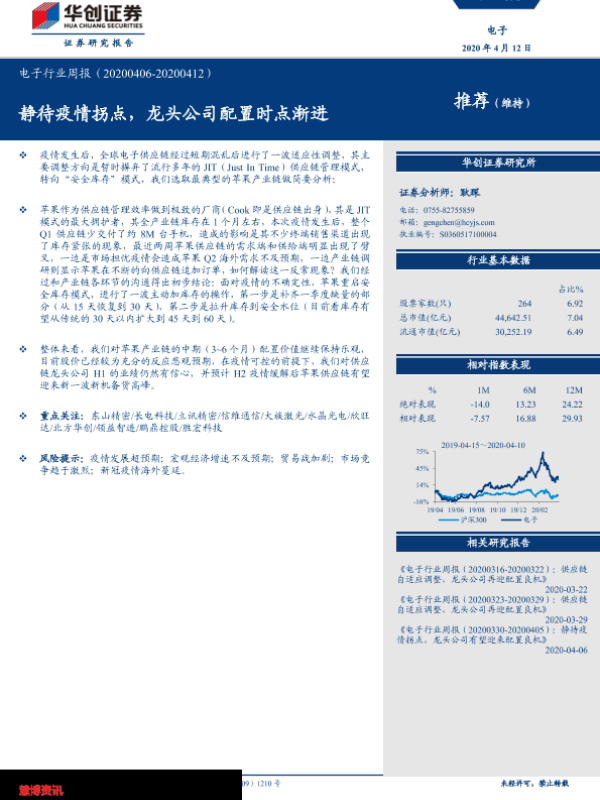 【华创证券】【20200412】20200412-华创证券-电子行业周报:静待疫情拐点,龙头公司配置时点渐进-21页