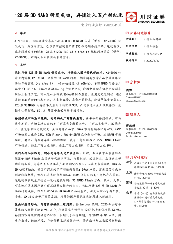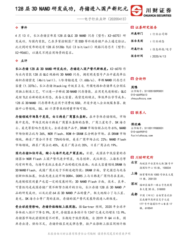【川财证券】【20200413】128层3D NAND研发成功,存储进入国产新纪元-3页