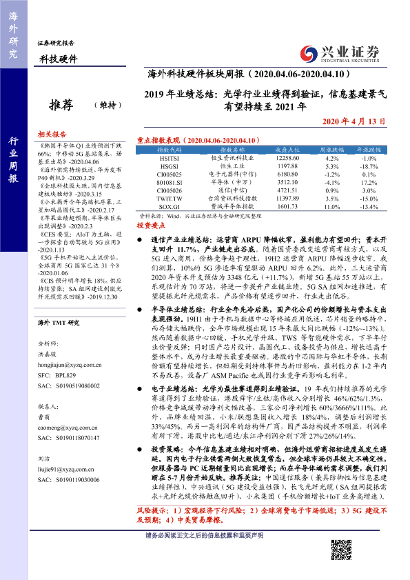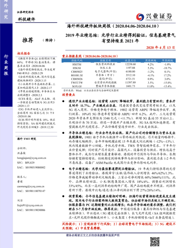 【兴业证券】【20200413】2019年业绩总结:光学行业业绩得到验证,信息基建景气有望持续至2021年-25页