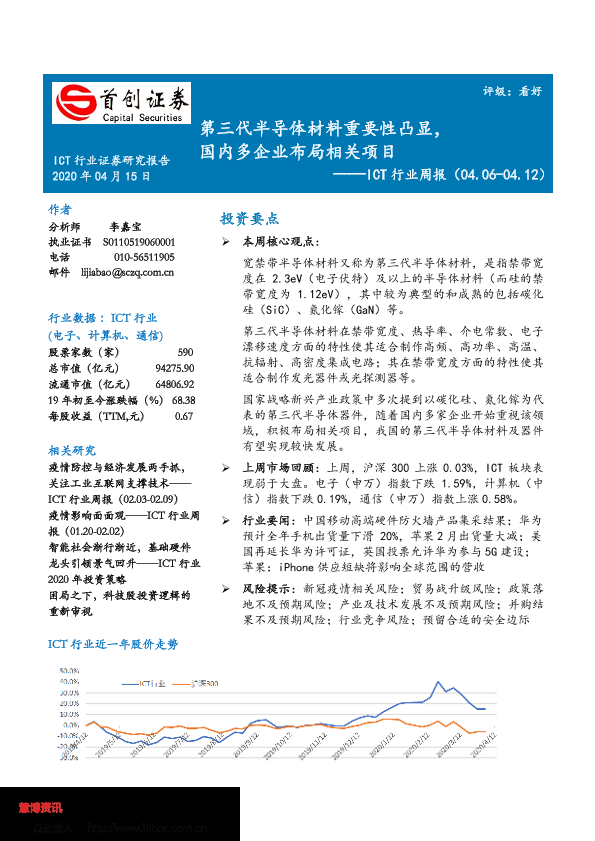 【首创证券】【20200415】20200415-首创证券-ICT行业周报:第三代半导体材料重要性凸显,国内多企业布局相关项目-15页