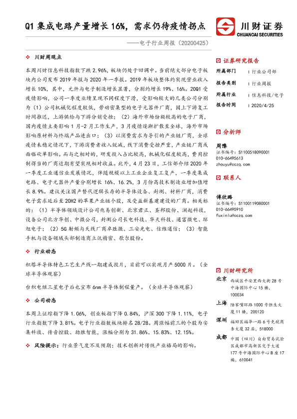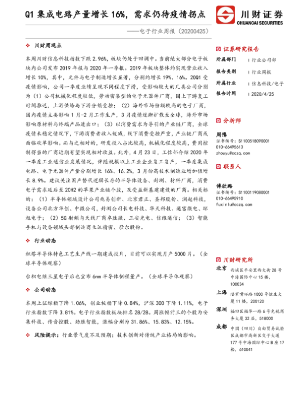 【川财证券】【20200425】Q1集成电路产量增长16%,需求仍待疫情拐点-14页