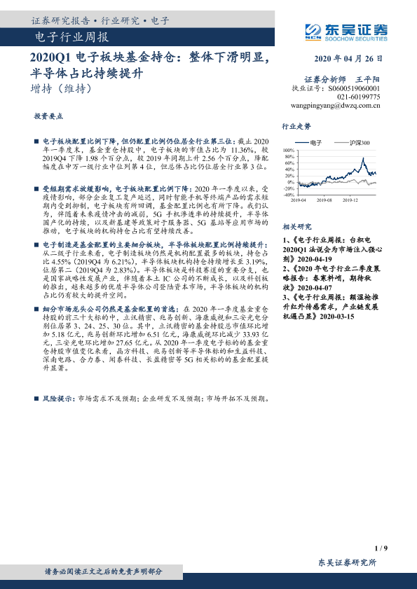 【东吴证券】【20200426】2020Q1电子板块基金持仓:整体下滑明显,半导体占比持续提升-9页