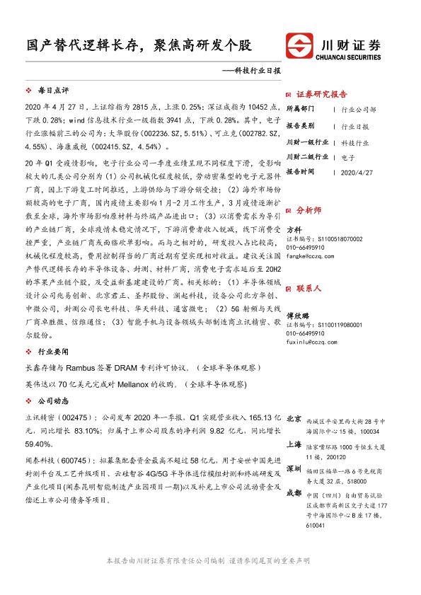 【川财证券】【20200427】科技行业日报:国产替代逻辑长存,聚焦高研发个股-3页