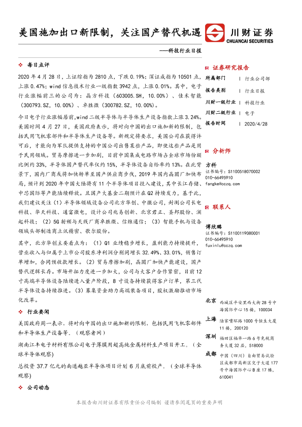 【川财证券】【20200428】科技行业日报:美国施加出口新限制,关注国产替代机遇-4页