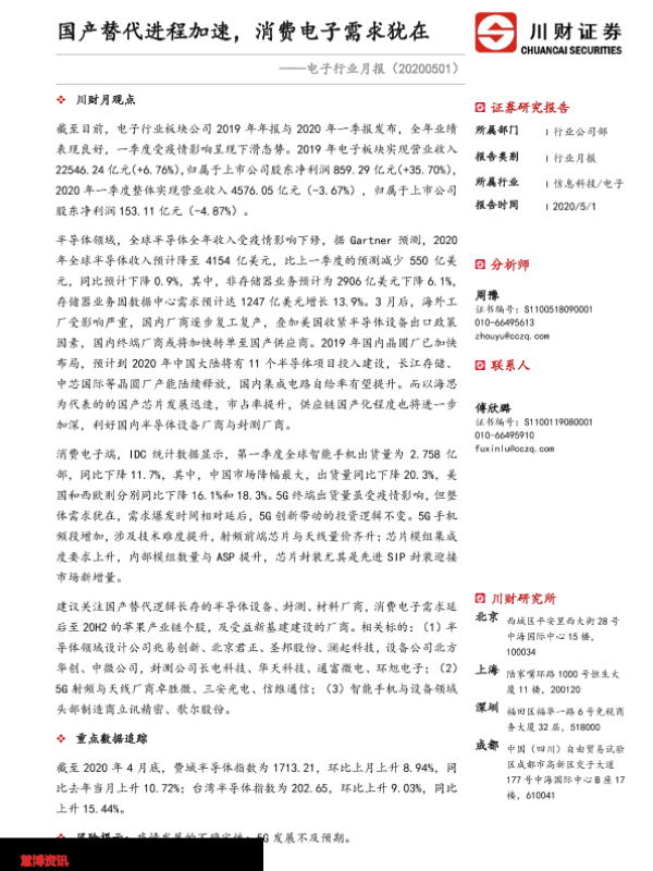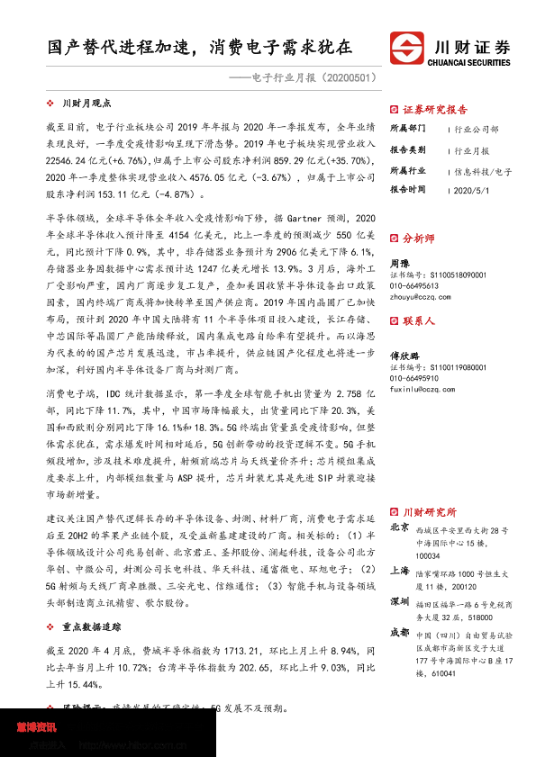 【川财证券】【20200501】电子行业月报:国产替代进程加速,消费电子需求犹在-23页