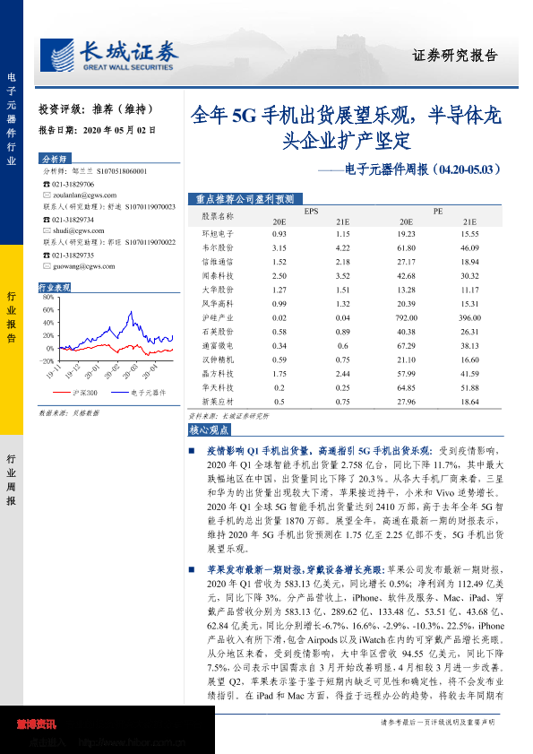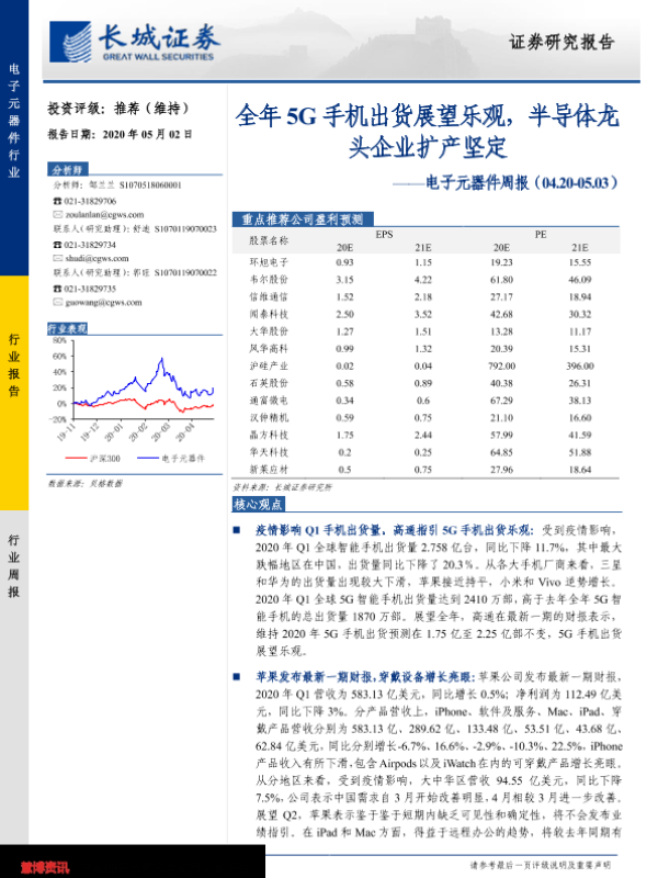 【长城证券】【20200502】20200502-长城证券-电子元器件周报:全年5G手机出货展望乐观,半导体头企业扩产坚定-29页