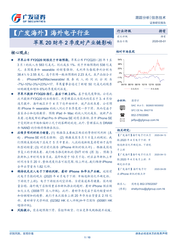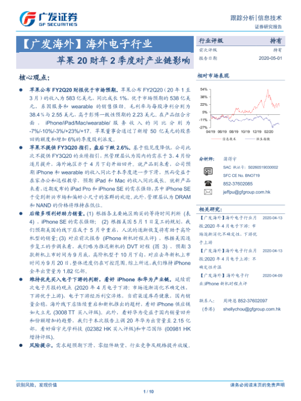 【广发证券】【20200501】海外电子行业:苹果20财年2季度对产业链影响-10页