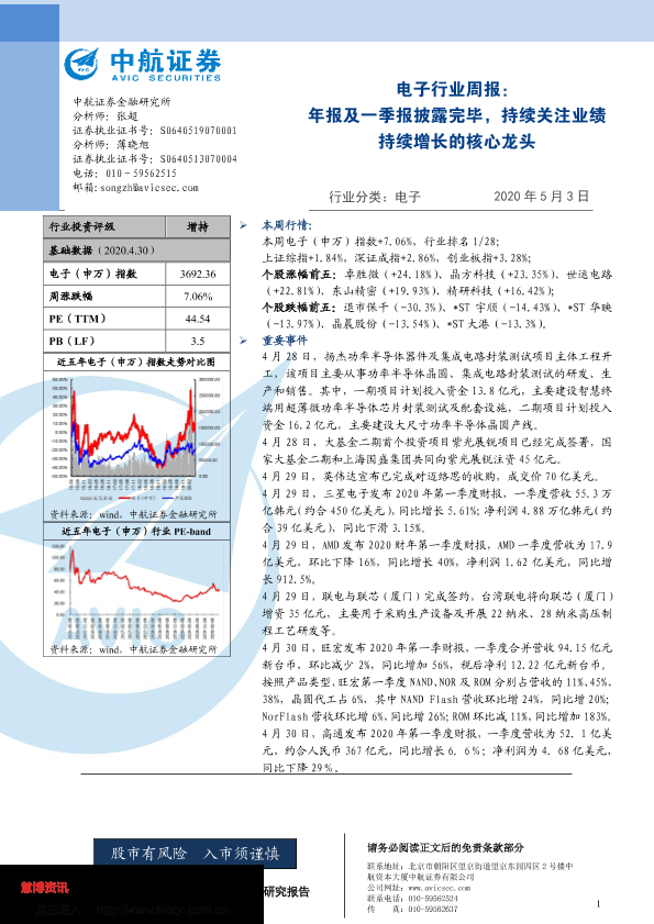 【中航证券】【20200503】20200503-中航证券-电子行业周报:年报及一季报披露完毕,持续关注业绩持续增长的核心龙头-4页