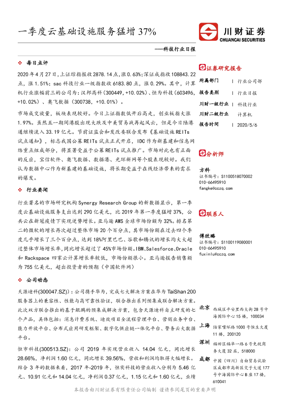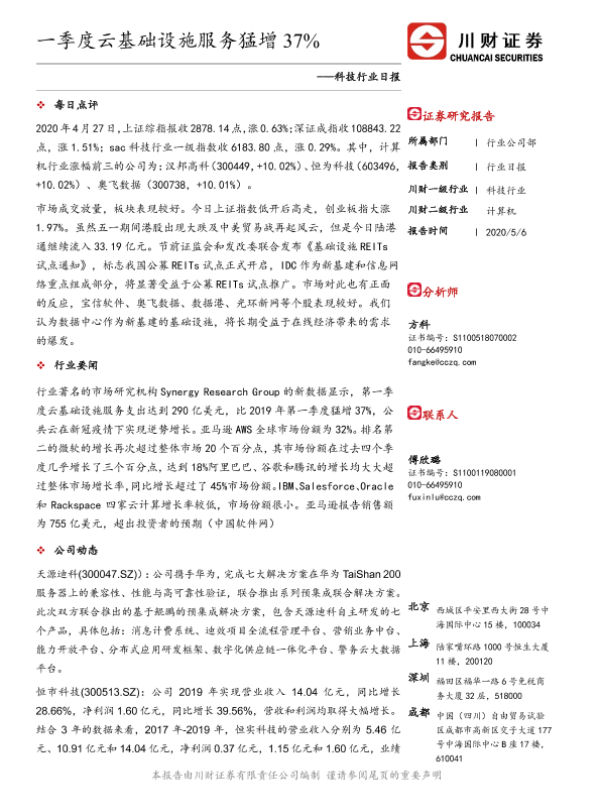 【川财证券】【20200506】一季度云基础设施服务猛增37%-3页