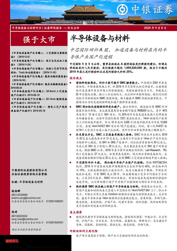 【中银证券】【20200506】半导体设备与材料:中芯国际回归A股,加速设备与材料在内的半导体产业国产化进程-7页