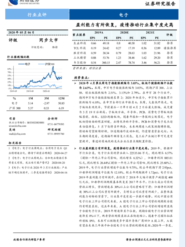 A股 电子行业 疫情影响 盈利能力恢复 行业集中度