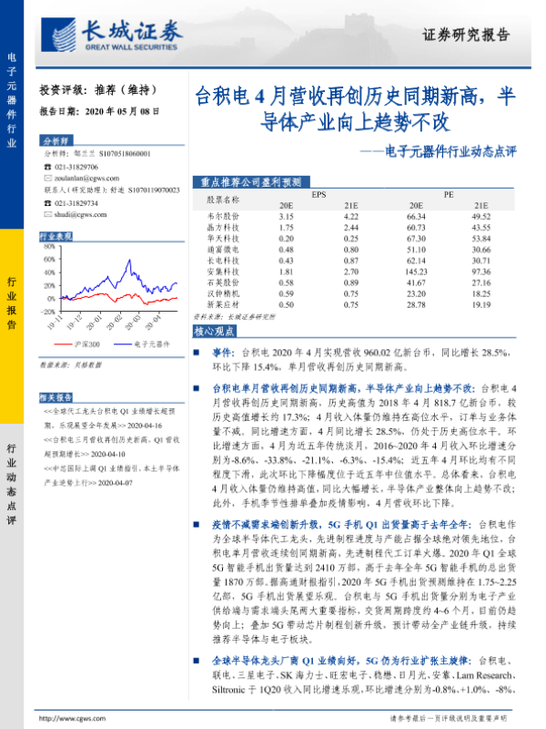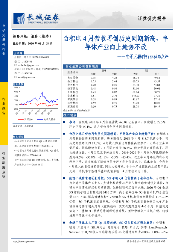 【长城证券】【20200508】20200508-长城证券-电子元器件行业动态点评:台积电4月营收再创历史同期新高,半导体产业向上趋势不改-3页