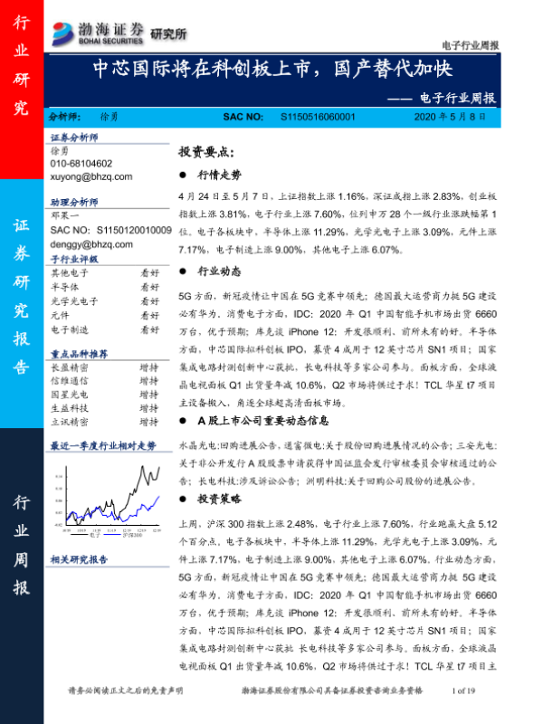 【渤海证券】【20200508】电子行业周报:中芯国际将在科创板上市,国产替代加快-19页