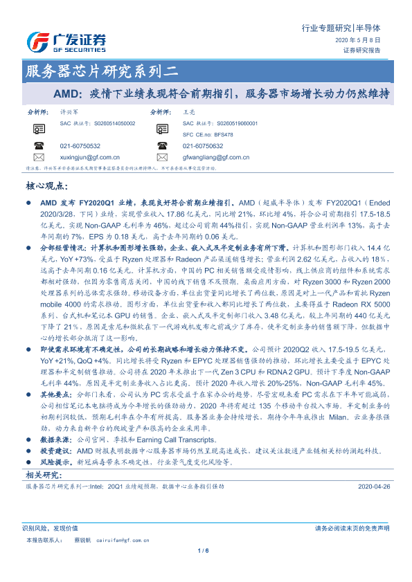 【广发证券】【20200508】AMD:疫情下业绩表现符合前期指引,服务器市场增长动力仍然维持-6页