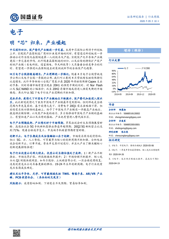 【国盛证券】【20200510】20200510-国盛证券-电子行业周报:明“芯”归来,产业崛起-11页