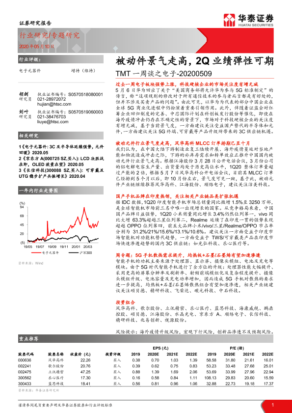 【华泰证券】【20200510】TMT一周谈之电子:被动件景气走高,2Q业绩弹性可期-19页