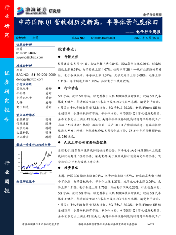 【渤海证券】【20200515】20200515-渤海证券-电子行业周报:中芯国际Q1营收创历史新高,半导体景气度依旧-23页