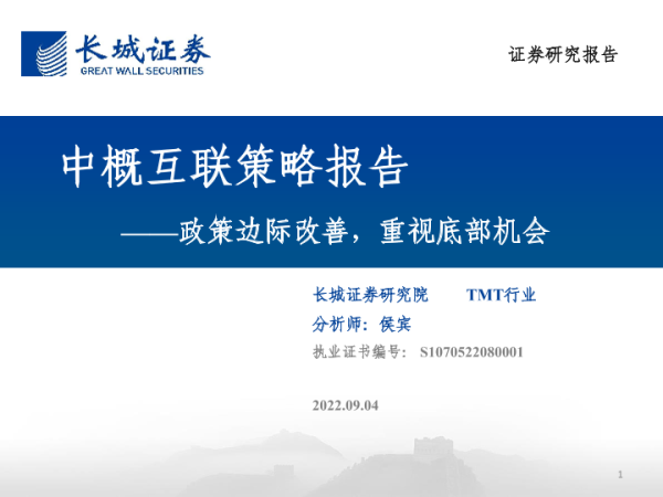 【长城证券】【20220904】TMT行业中概互联策略报告:政策边际改善,重视底部机会-28页