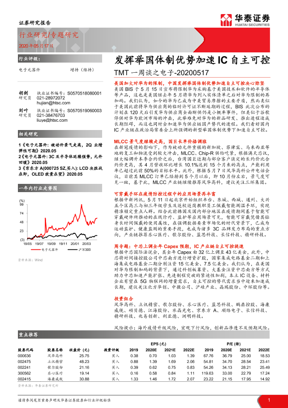 【华泰证券】【20200517】TMT一周谈之电子:发挥举国体制优势加速IC自主可控-18页