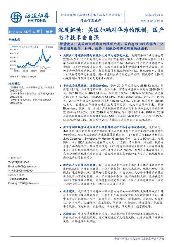 【海通证券】【20200520】20200520-海通证券-半导体产品与半导体设备深度解读:美国加码对华为的限制,国产芯片技术当自强-7页