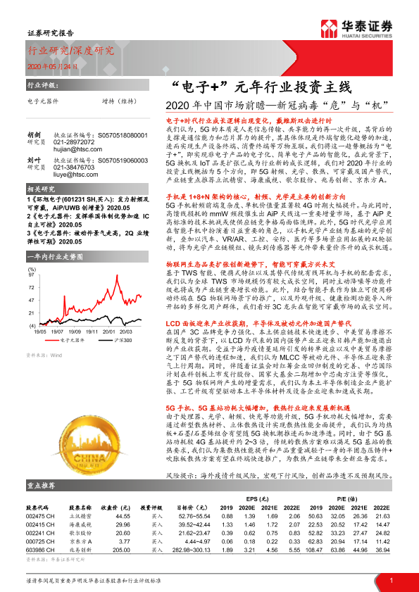 【华泰证券】【20200524】2020年中国市场前瞻—新冠病毒“危”与“机”:“电子+”元年行业投资主线-30页