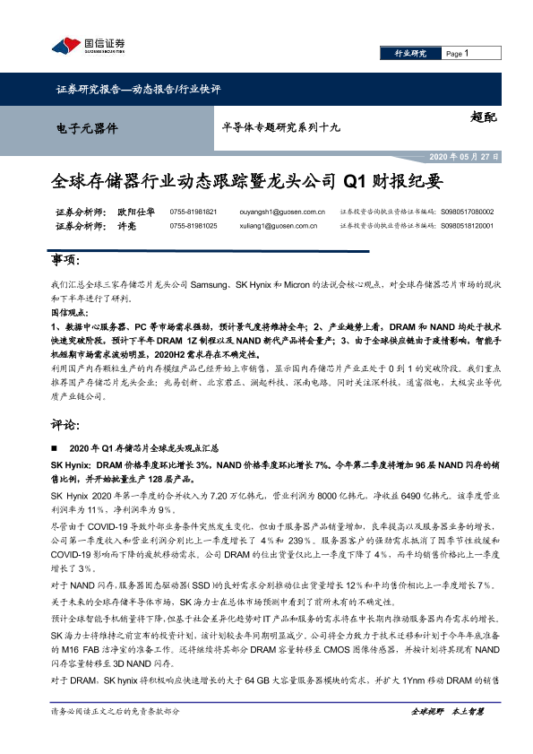 【国信证券】【20200527】全球存储器行业动态跟踪暨龙头公司Q1财报纪要-11页