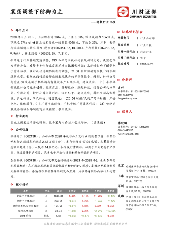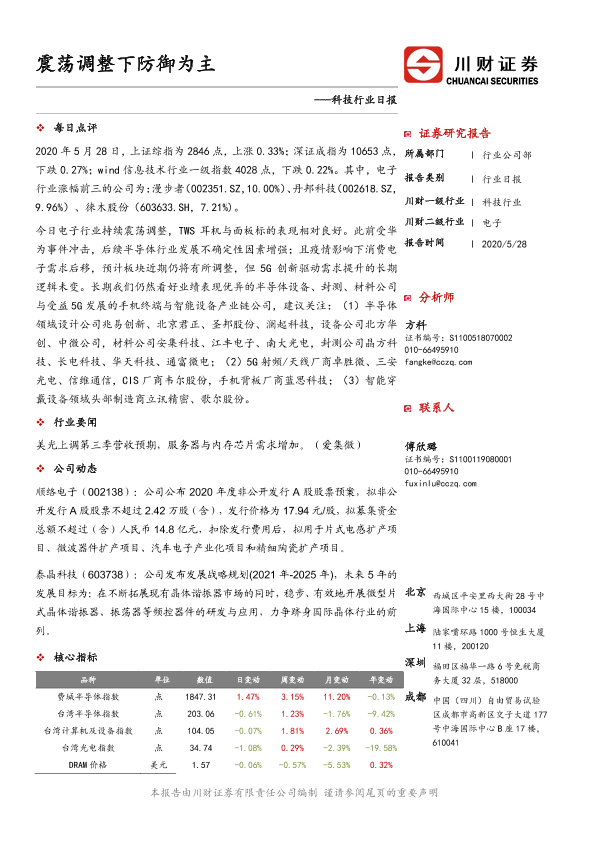 【川财证券】【20200528】科技行业日报:震荡调整下防御为主-4页