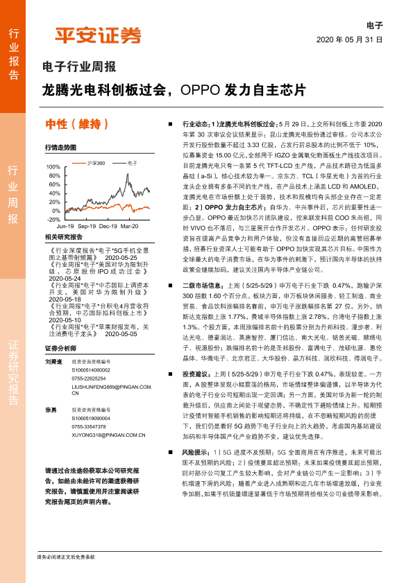 【平安证券】【20200531】20200531-平安证券-电子行业周报:龙腾光电科创板过会,OPPO发力自主芯片-5页